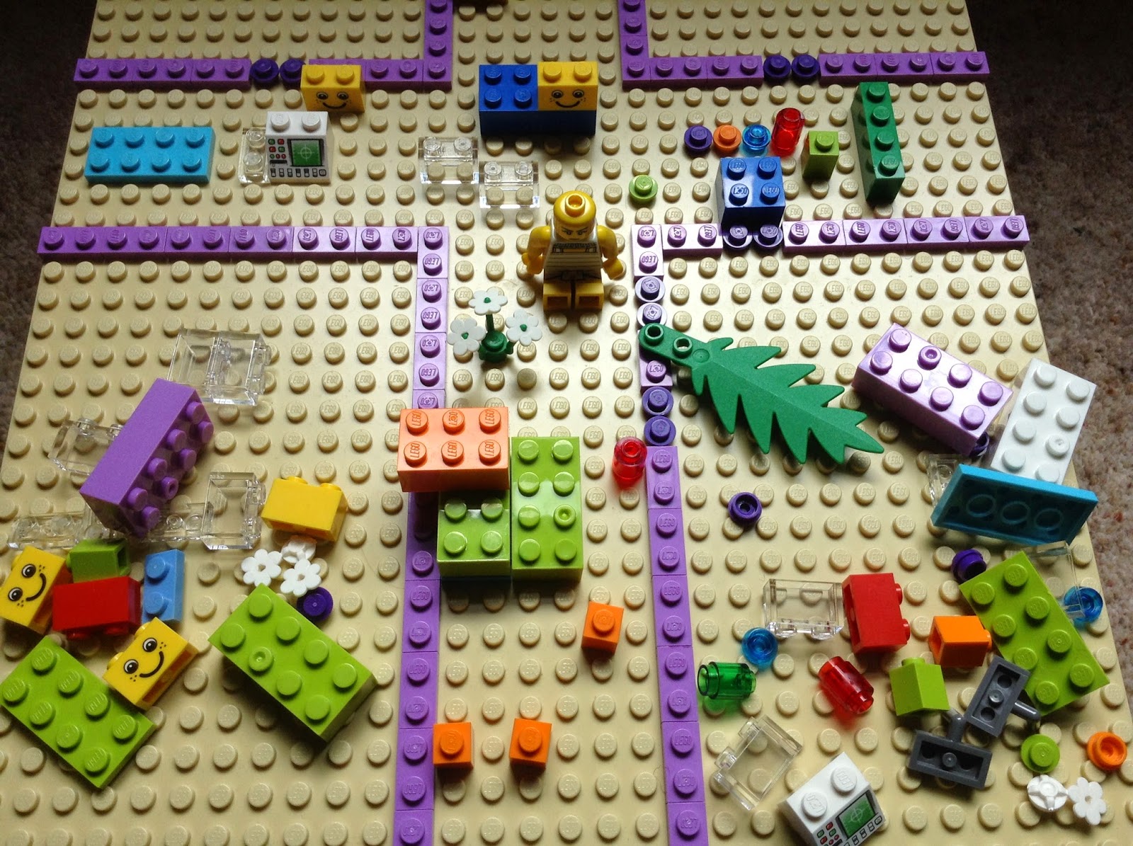 You will need: A lego baseboard, lego bricks, lego people, lego accessories of any and every kind!
