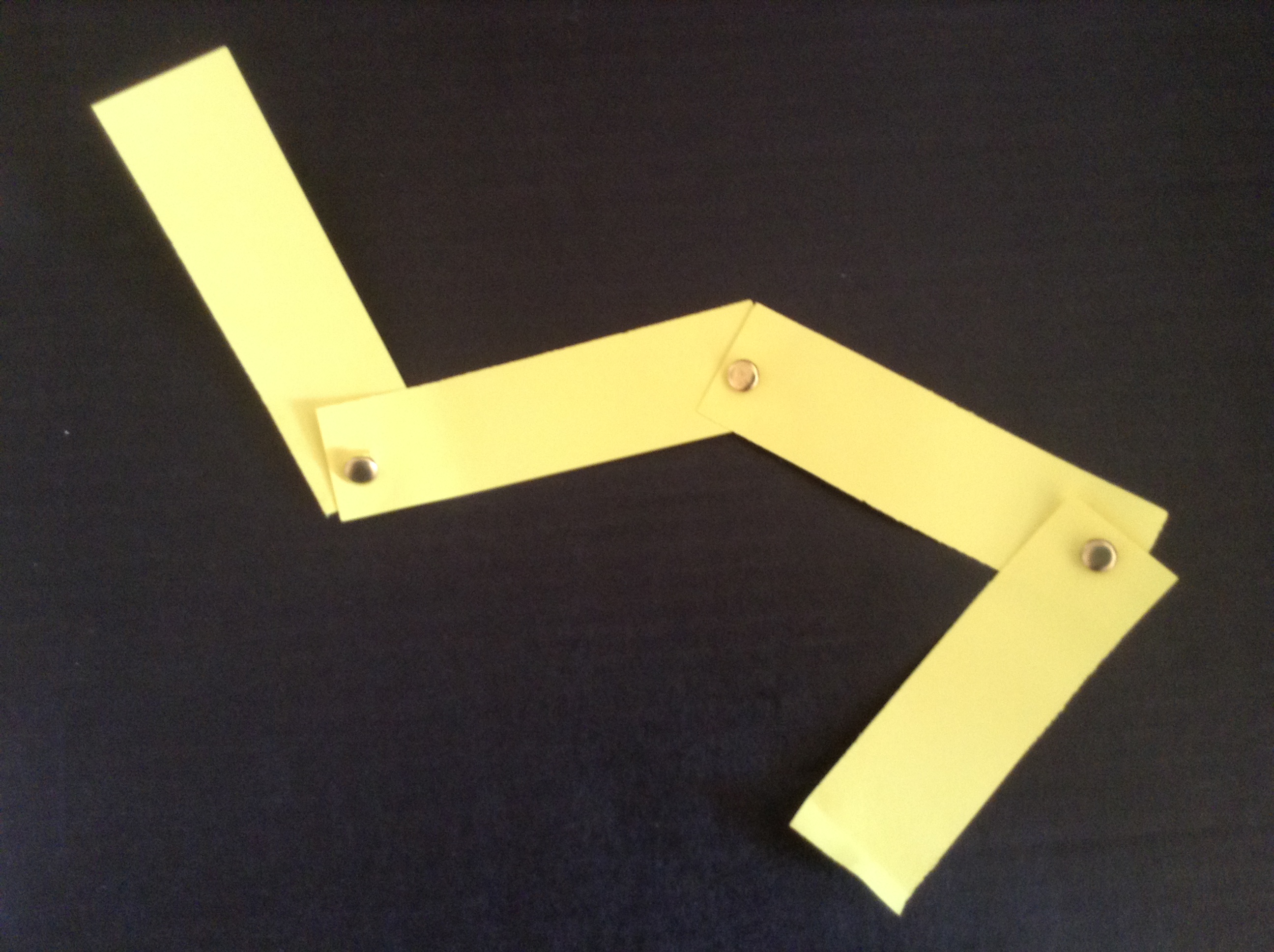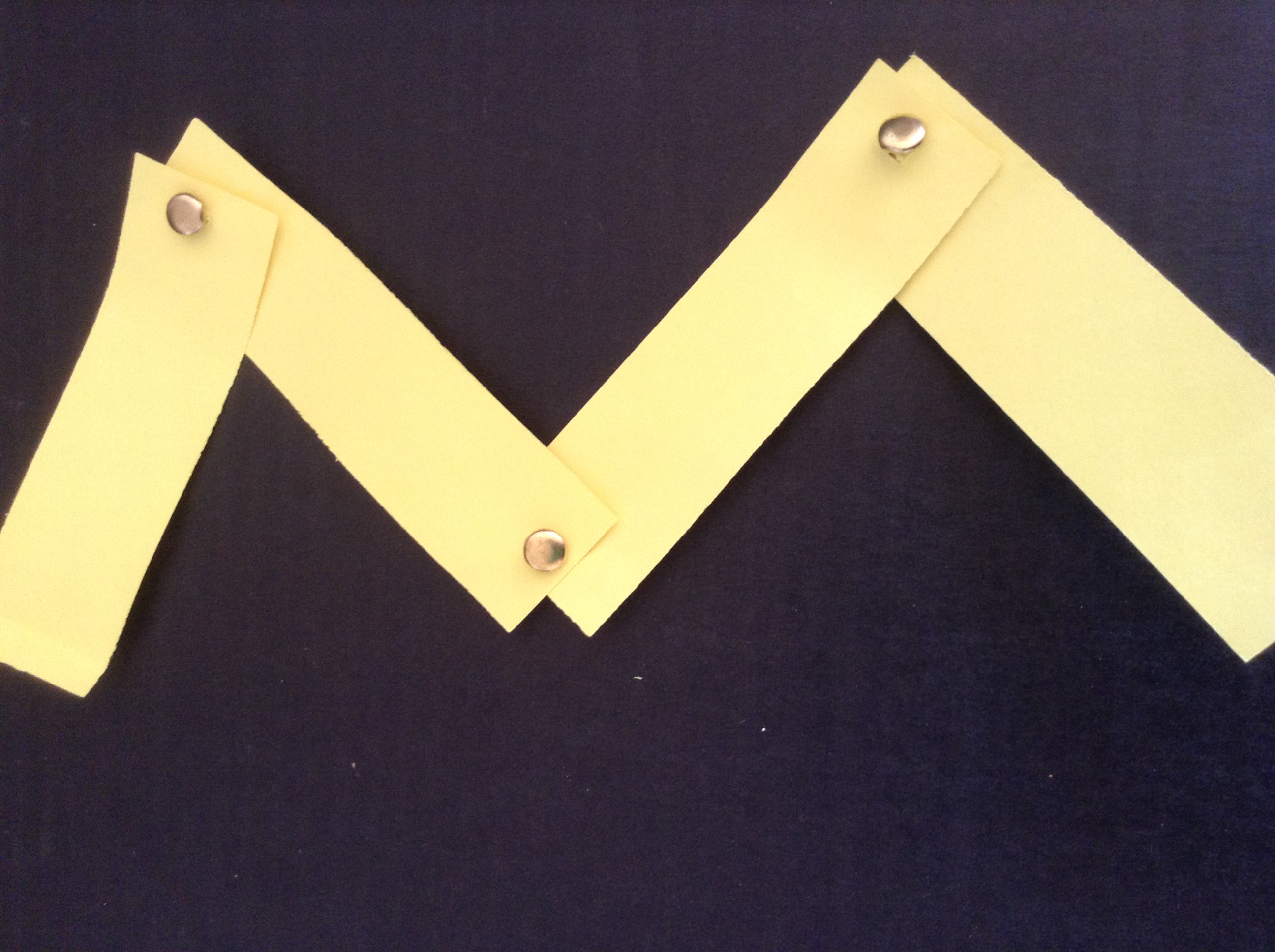 You will need: 4 Card strips (judge size depending on how close the children are going to be and how big the group is. You will probably need bigger strips for a bigger group, but expriment with what works best for you!), paper fasteners (split pins), something to make a hole with.