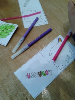 Make a hole in the end of each piece of card and join the pieces with split pins so that it looks as shown. You now have your storytelling equipment!