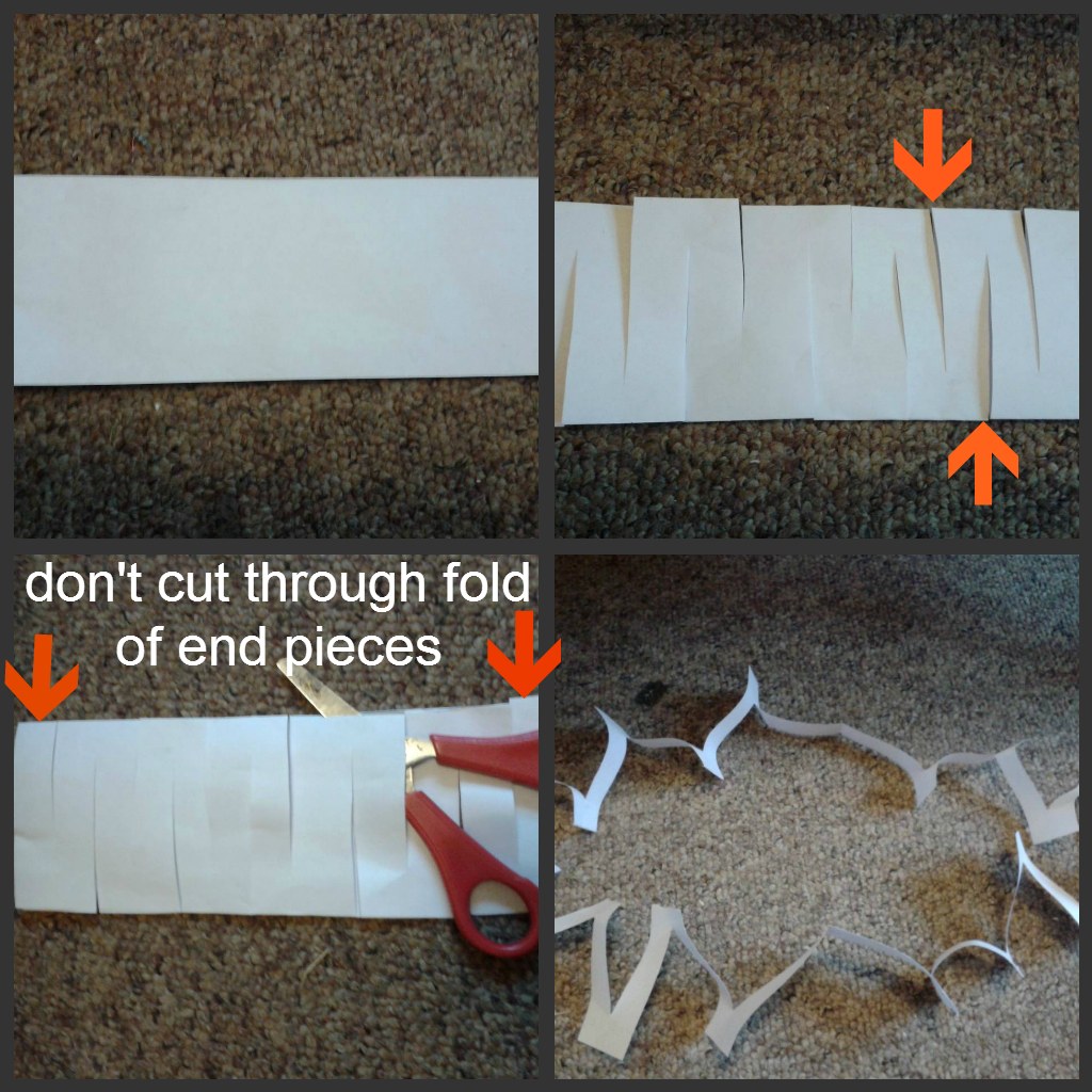 3.Cut through the fold of the paper, leaving the fold of the end slit pieces in tact