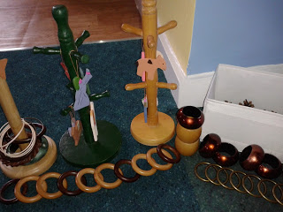 - Red, yellow and orange ribbons tied to shower rings (streamers)