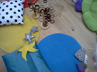 At our recent Pentecost service, we had a basket available to help babies and toddlers explore the colours and symbols of the Holy Spirit (specifically love, wind, fire, doves, red). The children and parents really got stuck in to discovering!