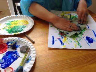 At our recent Pentecost service, we had a basket available to help babies and toddlers explore the colours and symbols of the Holy Spirit (specifically love, wind, fire, doves, red). The children and parents really got stuck in to discovering!
