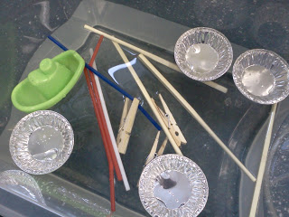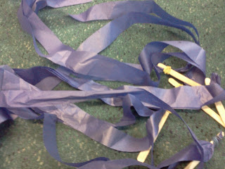 Play with some water streamers made of crepe paper, lolly sticks and elastic bands